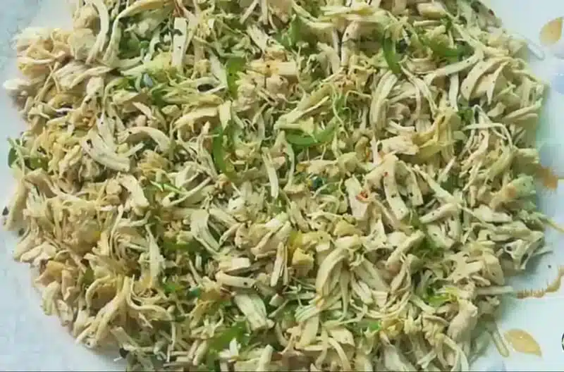 - Now shred the chicken with hands.